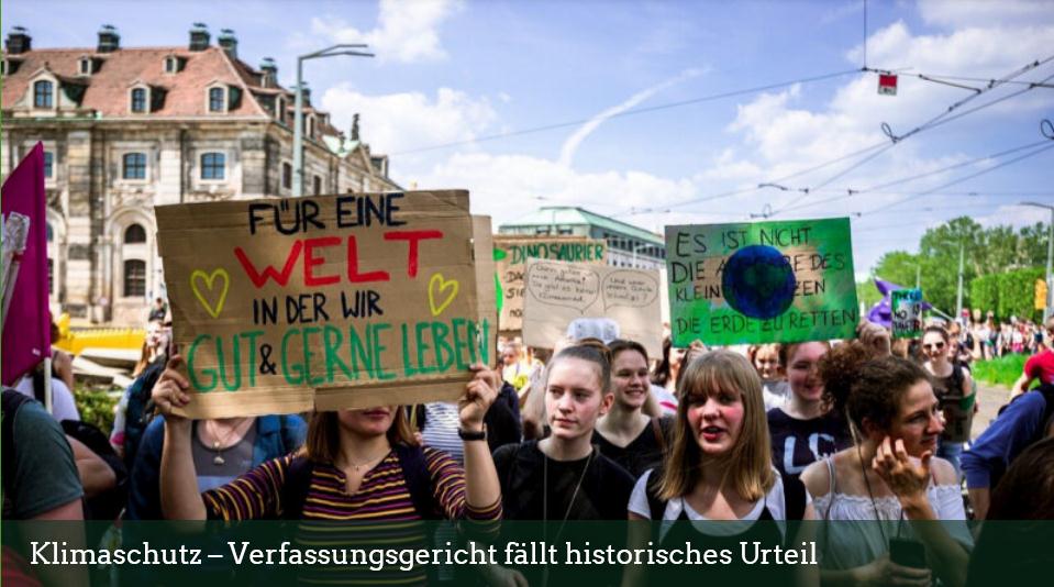 29. April 2021- ein großartiger Tag für das Klima: Das Klimaschutzgesetz muss nachgebessert werden! Wie gut, dass das Verfassungsgericht unabhängig ist!