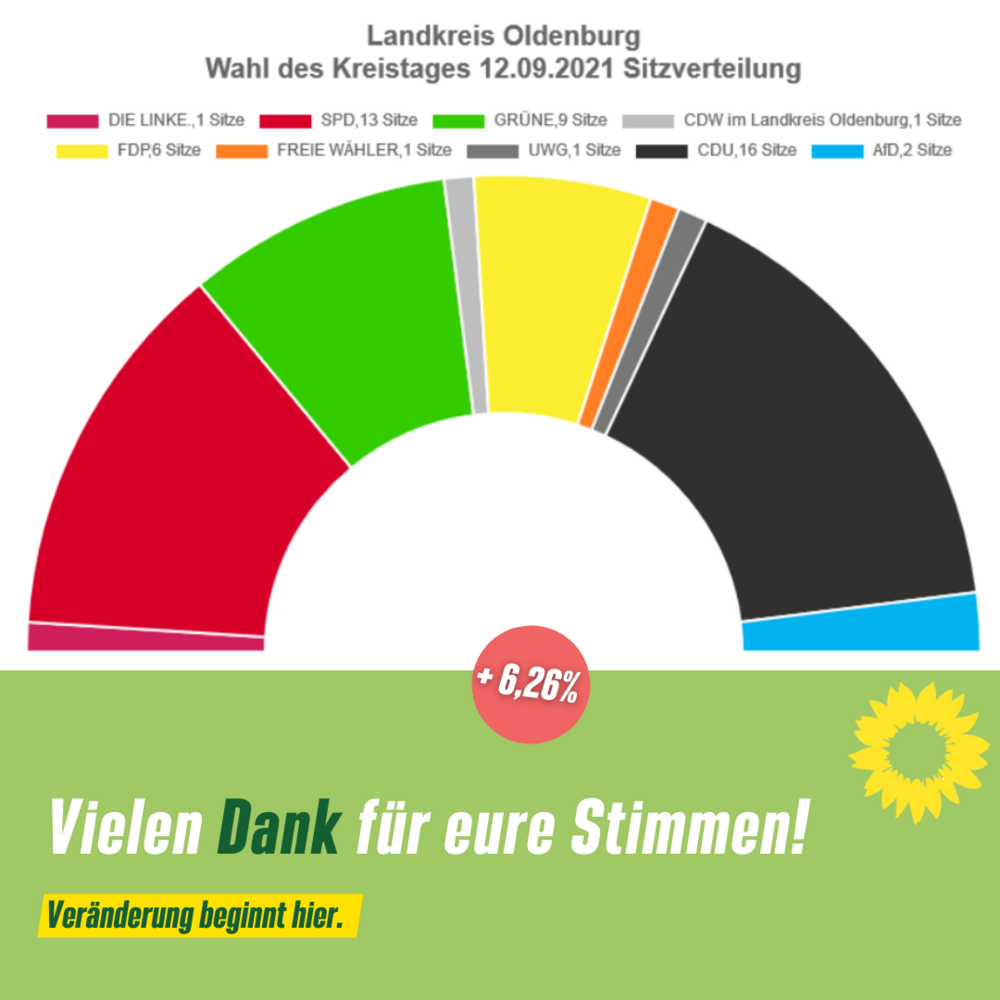 Der Grüne Bürgermeisterkandidat Udo Heinen aus Ganderkesee und der in Hatten unterstützte Kandidat Guido Heinisch kommen in die Stichwahl. Die unterstützten Kandidat*innen aus Dötlingen Antje Oltmanns und für die Samtgemeinde Harpstedt Yves Nagel stehen schon als gewählte Bürgermeister*innen fest.